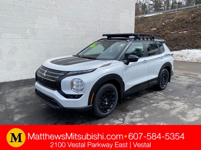 White Diamond/Black Roof 2026 Mitsubishi Outlander Trail Edition AWD CVT 1.5L I4 Turbocharged DOHC 16V LEV3-SULEV30 174hp 1.5L I4 Turbocharged DOHC 16V LEV3-SULEV30 174hp, AWD, ABS brakes, Active Cruise Control, Alloy wheels, Compass, Electronic Stability Control, Front dual zone A/C, Heated door mirrors, Heated Front Bucket Seats, Heated front seats, Illuminated entry, Low tire pressure warning, Navigation System, Power Liftgate, Remote keyless entry, Traction control.