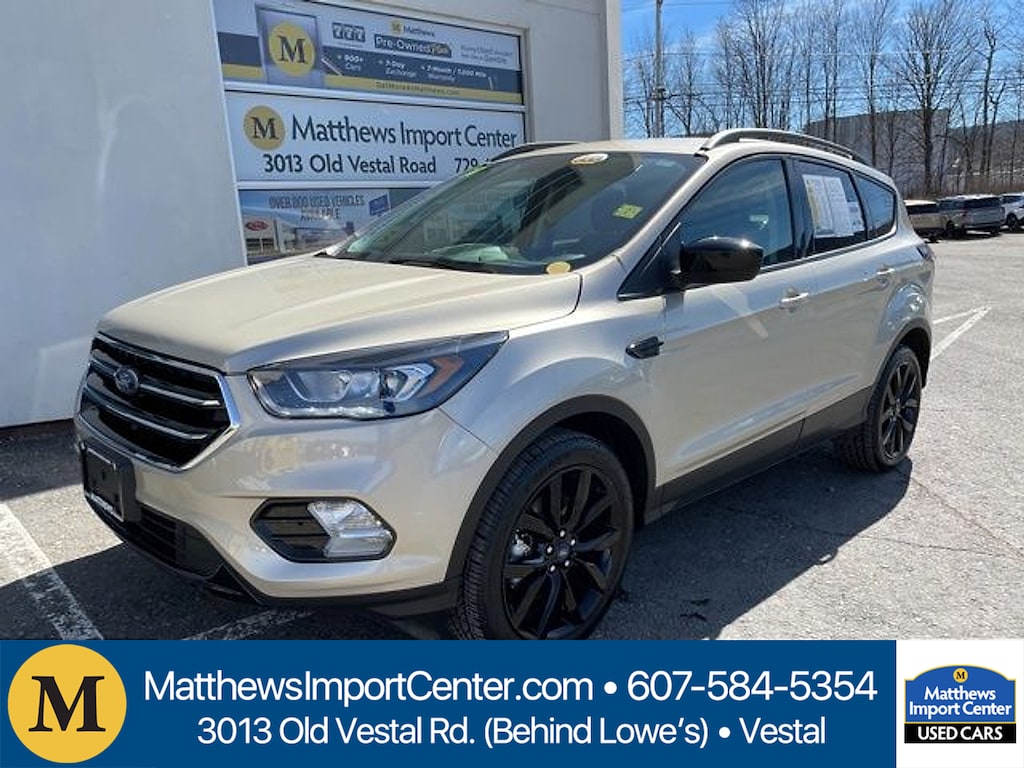 Matthews Import Center promises each customer a thorough and confident 120-point inspection on our used inventory guaranteeing a relaxing and peace-of-mind experience. We are located behind Lowes in Vestal NY. Or call us at (607) 729 - 6261Matthews Import Center3013 Old Vestal RoadVestal NY 13850. White Gold 2018 Ford SE Escape 4WD 6-Speed Automatic EcoBoost 2.0L I4 GTDi DOHC Turbocharged VCTOdometer is 72842 miles below market average! 22/28 City/Highway MPGAwards: * 2018 KBB.com Brand Image Awards * 2018 KBB.com 10 Most Awarded Brands